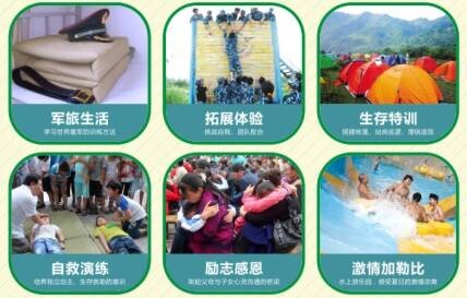 活动三:野外生存技能训练;野外定向寻宝及医疗救护、方向的识别指北针的使用、如何辨别食物、可饮用水、如何在野外寻找栖身之地、扎帐篷等野外生存训练活动。