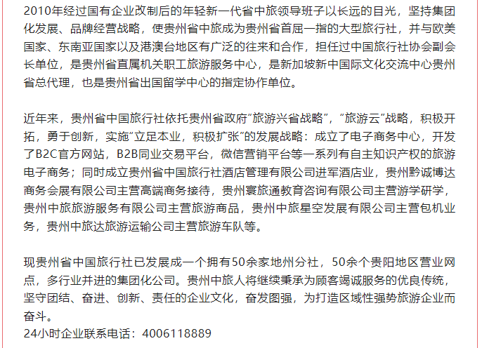 旅业必存榜优秀地接推荐——贵州省中国旅行社有限责任公司
